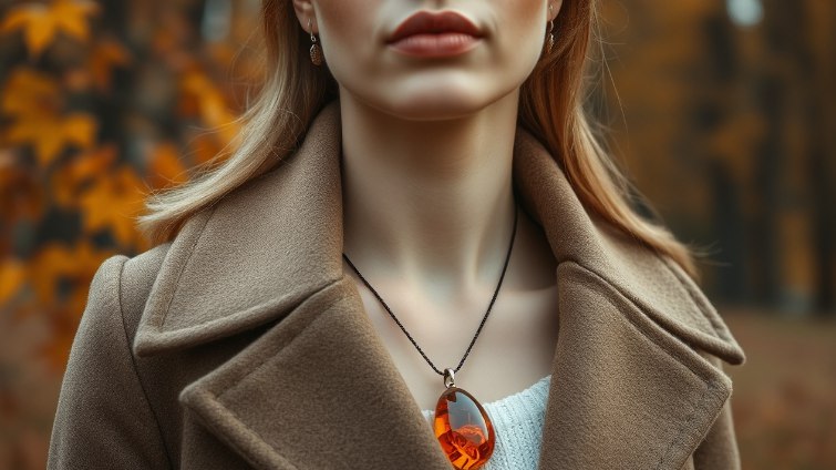 Осень возвращает любовь к натуральным материалам. Украшения с янтарём несут тепло и мягкий свет в образ. Особенно эффектно смотрятся тёплые медовые и коричневые оттенки, они словно добавляют в образ золотой листок.