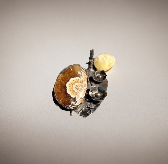 Украшение из янтаря и металла сочетает в себе природную теплоту и строгую выразительность. Янтарь сияет мягким светом, а металл создаёт прочный каркас. Такое изделие ручной работы подойдёт для тех, кто ценит гармонию в деталях.