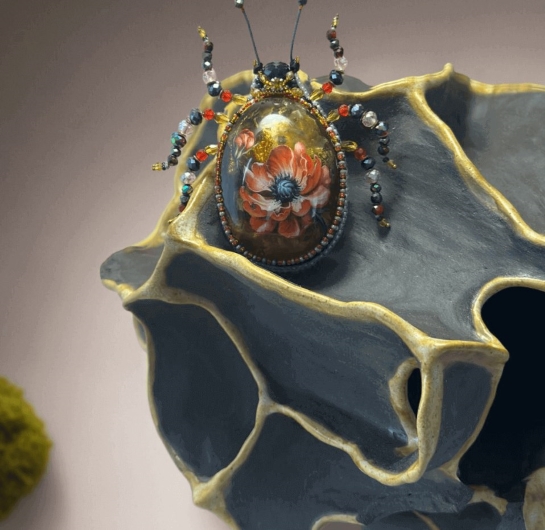 Янтарный жук — это уникальное янтарное украшение, выполненное в виде кабошона с ярким мотивом, окруженного бисером. Кабошон украшен глянцевым покрытием, создающим эффект живописной картины. Интересный дизайн с элементами готики и этники делает изделие ярким акцентом любого образа. Отлично подойдет для любителей необычных украшений, ценящих искусство и оригинальность. Идеальный аксессуар для особых случаев и креативных личностей.