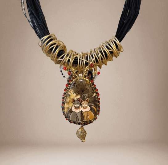 Колье из янтаря «Два кота»
