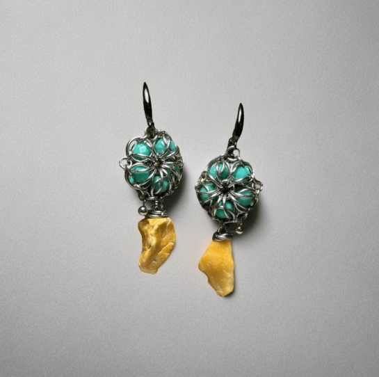 Янтарное украшение с металлическим обрамлением подойдёт тем, кто ценит натуральные материалы. Янтарь сияет золотыми оттенками, металл добавляет благородства. Каждое изделие ручной работы уникально.